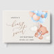 Libro De Visitas Oso bebé, globos azules, primer cumpleaños