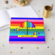Pegatinas de paraguas a rayas de arcoiris. Agregue la información de evento / fiesta en la parte posterior de la tarjeta. Es bueno para duchas de bebé, cumpleaños, eventos del Día del Orgullo y más. Por https://www.zazzle.com/store/celestesheffey