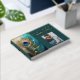 Una hermosa, elegante y llamativa pluma de pavo real con finas hebras de oro y una verde azulada columna de rosette azul y verde esmeralda parece brillar y brillar contra un oscuro fondo de mármol verde azulado y azul que tiene sobre ella falsos esparcires de oro. El telón de fondo oscuro hace que la pluma azul sea un poco pop y el verdadero Relieve metalizado dorado añade un toque de lujo y sofisticación. Debajo de las plantillas de texto hay una plantilla de fotos para la fotografía de parejas de novias o el logo corporativo. Todas las plantillas en la columna vertebral y en la parte frontal pueden ser personalizadas y el estilo del tipo de letra puede cambiarse a su gusto personal. Son ideales para un evento formal de negocios; un "boda temático de pavo real" o cualquier aniversario especial del jardín exterior; función o evento de novias que usted pueda estar organizando. Disfrute de los recuerdos con este elegante y a medida. Los colores del Relieve metalizado y del tipo de letra pueden cambiarse a oro o oro subió y las páginas pueden pasar de estar alineadas a estar en blanco o incluso a ser negras si se utilizan sharpies metálicos.
