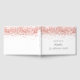 Un libro de visitas para un cumpleaños 50 (o cualquier edad) femenino y glamuroso. Un fondo blanco con confeti de oro rosa. Personalice y agregue un nombre y una edad de 50 años. El nombre está escrito con una escritura de estilo con letras a mano moderna. Espina: agrega tu propio texto.