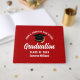 Este moderno libro de invitados para la fiesta de graduación de personalizados rojos y blancos incluye tu nombre de instituto o universidad para la clase de 2025. Personalizar con tu año de graduación bajo el guión manuscrito de la moda y gorro negro para un gran regalo personalizado para graduados.