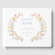 Capture classic elegance with this sophisticated and refined wedding guest book adorned by a delicate pastel floral wreath intertwined with colorful wildflowers. This guest book serves as an ideal wedding gift for the newlyweds, adding a touch of timeless charm to their special day.