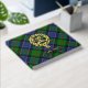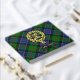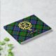 Insignia escudo del clan Paterson rodeada por una correa y hebilla sobre el fondo del tartán. texto frontal, espalda y columna vertebral personalizado.
