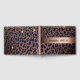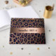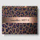 Elegante, fresco, glamuroso y femenino para una fiesta de 16 y 16 años de dulce con estampado de leopardo marrón, dorado y negro, decorado con confetti dorado. Plantilla para un nombre y edad 16. Banda de aspecto metálico de bronce falso. Guión de estilo con letras de color negro, letras. Espina: agrega tu propio texto.