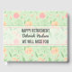 Felices jubilaciones - perfectas como libro de fiestas de jubilaciones o como regalo para un compañero de trabajo o empleado. El diseño presenta un patrón floral de flores acuáticas en tonos rosa y melocotón sobre un suave fondo verde. La plantilla está preparada para que edite la redacción de la portada y el título de la columna vertebral. El texto de la muestra en la parte delantera dice "Feliz Jubilación [su nombre] Te extrañaremos".
