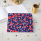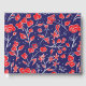 Este diseño presenta un ilustracion a mano de hermosas flores rojas sobre un fondo azul marino. Es un lugar lindo y peculiar, aunque también muy elegante.