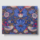 "Strawberry Thief" es un diseño textil creado por el diseñador británico William Morris en 1883. El trabajo presenta un intrincado patrón de fresas, flores y pájaros, principalmente los tordos que parecen estar robando las fresas. Las formas exuberantes y naturalistas están dispuestas en un patrón armonioso y repetitivo que muestra el amor de Morris por la naturaleza y su compromiso con la artesanía. La paleta de colores es rica y vibrante, con rojos profundos, verdes y azules, que evocan una sensación de abundancia y la belleza del mundo natural. El diseño de Morris refleja los ideales del Movimiento de Artes y Artesanías, enfatizando la artesanía y la belleza de la naturaleza en la vida cotidiana. La interacción lúdica entre los arbustos y las fresas le da al diseño una calidad caprichosa y elegante, convirtiéndolo en una célebre pieza de arte textil que sigue inspirando el diseño contemporáneo.
