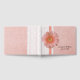 El libro de bodas de moda rústica hecho con un estilo burlap color melocotón. Gráficos de encaje blanco, un lazo de satén de color durazno y una gran flor de margarita Gerber melocotón, decoran el frente izquierdo del libro. Personalice los campos de texto para su día especial.