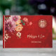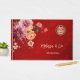Este libro de bodas chinos incluye flores de bonito rojo y amarillo peonía y un símbolo de doble felicidad dorado sobre un fondo rojo rubí resplandeciente. El traje boda correspondiente está disponible. Si hace clic en: personalizar la plantilla - puede personalizar los textos frontales y espinosos juntos. Si desea realizar cambios adicionales o tener los textos frontales y espinales de forma diferente, vaya a la sección de capas haciendo clic en: Editar diseño.