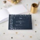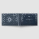Bienvenidos a su casa de campo o cabaña de alquiler con este libro de bonito de azul marino oscuro con Relieve metalizado plateado real. Este libro personalizado tiene un amplio y abstracto patrón de flores de mandala en la parte delantera y trasera, con un marco en la parte delantera que incluye motivos florales. Las plantillas de texto personalizado tienen espacio para la fecha establecida, el nombre de la cabaña y una línea que motivadora a sus visitantes a firmar. También puede agregar texto a la columna vertebral.