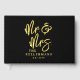 This custom wedding guest book features a clean black cover with elegant foil text for a timeless and elevated look. “Mr. & Mrs” is displayed in large handwritten script as a bold focal point, finished in your choice of gold, silver, or rose gold metallic foil. The couple’s last name and wedding date appear directly below in classic serif fonts, also in matching foil, creating a balanced and refined design.