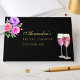 Personaliza este Libro de Invitados para Desayuno Nupcial de Pétalos Elegantes y Prosecco: un recuerdo perfecto para celebrar un día especial. Este libro elegante presenta champán rosado en delicadas y elegantes copas sobre un sofisticado fondo negro. La portada está adornada con hermosas peonías rosadas y lilas entrelazadas con suaves verdes, creando una ambientación floral soñadora. La fuente de caligrafía con escritura de lámina elegante añade un toque de lujo, capturando la esencia femenina de la ocasión. Ideal para un desayuno nupcial floral brillante, este libro de invitados es un recuerdo atemporal que preservará los recuerdos queridos durante años.