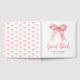 Pretty birthday party guest book featuring a pink coquette bow ribbon. The words can be changed to suit your own details or requirements
