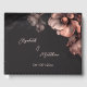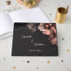 This elegant contemporary wedding guest book features pink metallic flowers on a black background with bride and groom name and the wedding date.