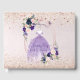 PixDezines quinceañera vestido púrpura polvoriento y dorado rosa, flores de acuarela en rosa claro y púrpura profundo. Acentuamos con mariposas en rosa claro. Fondo iridiscente rosa claro con corte de gema como marco de puerta que simboliza una nueva puerta para entrar en otra fase de la vida. Todos los elementos son editables.