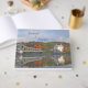 Este libro de visitas incluye una escena otoñal de la Ópera Goodspeed y el Puente que se encuentra en el río Connecticut, al este de Haddam, Connecticut.