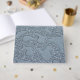 Este diseño presenta una imagen de lluvia colectando en charcos contra una superficie azul oscura.