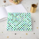 Este diseño presenta un atractivo y llamativo patrón de puntos de polka en varios tonos de verde y azul.