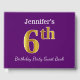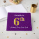 El diseño de este libro de huéspedes incluye el número ordinal "6º" con un aspecto falso dorado. También tiene un nombre personalizado y un fondo morado. Se podría usar en un fiesta para alguien que celebre su sexto cumpleaños. [~Z0000057]