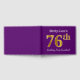 El diseño de este libro de huéspedes incluye el número ordinal "76" con un aspecto de imitación de oro. También tiene un nombre personalizado y un fondo morado. Se podría usar en un fiesta para alguien que celebre su cumpleaños setenta y seis. [~Z0000057]