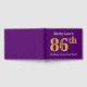 El diseño de este libro de huéspedes incluye el número ordinal "86th" con un aspecto de imitación de oro. También tiene un nombre personalizado y un fondo morado. Se podría usar en un fiesta para alguien que celebre su 86º cumpleaños. [~Z0000057]