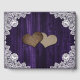 Complement your purple rustic wedding party with this floral wedding guest book featuring sunflowers, string lights, burlap hearts and delicate floral lace on a rustic wood background. Matching items available.