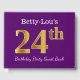 Libro De Visitas Púrpura, Faux Gold 24th Birthday Party; Nombre per