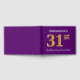 El diseño de este libro de huéspedes incluye el número ordinal 31 con un aspecto de imitación de oro. También tiene un nombre personalizado y un fondo morado. Se podría usar en un fiesta para alguien que celebre su 31º cumpleaños. [~Z0000057]