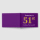 El diseño de este libro de huéspedes incluye el número ordinal "51" con un aspecto de imitación o imitación dorado. También tiene un nombre personalizado y un fondo morado. Se podría usar en un fiesta para alguien que celebre su primer cumpleaños. [~Z0000057]