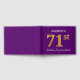 El diseño de este libro de huéspedes incluye el número ordinal "71" con un aspecto de imitación de oro. También tiene un nombre personalizado y un fondo morado. Se podría usar en un fiesta para alguien que celebre su 71º cumpleaños. [~Z0000057]