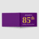 El diseño de este libro de huéspedes incluye el número ordinal "85" con un aspecto de oro falso. También tiene un nombre personalizado y un fondo morado. Se podría usar en un fiesta para alguien que celebre sus ochenta y cinco años. [~Z0000057]