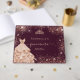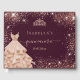 Para una elegante Quinceañera, 15 años. Un color de fondo burdeos de aspecto metálico. Decorada con rosa de oro falso polvo purpurina, una corona de tiara y un vestido. Personalice y agregue un nombre, edad y fecha. Quinceañera está escrita con un moderno guión de estilo escrito a mano con chispas.