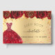 Para una fiesta de cumpleaños de Quinceañera. Un fondo dorado con destellos de brillo rojo y falso oro, un vestido y rosas rojas, flores. El nombre está escrito con un estilo de letra manuscrita moderna. Personalice y agregue un nombre y fecha.