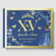 Este lujoso libro de Relieve metalizado de Quinceañera cuenta con hermosos rosas azules reales florales, un chica con un hermoso vestido azul real y elegantes acentos dorados. Personalízalo con tus detalles de forma fácil y rápida, simplemente pulsa el botón Editar usar herramienta de diseño para reorganizar y formatear el estilo y la ubicación del texto. Explore la coordinación de artículos disponibles en la tienda para crear una celebración elegante y coherente. c) El estudio Happy Cat Studio