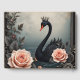 Rare as a black swan, timeless as true love. In a quiet moment beside still waters, the Royal Swan appears — crowned in grace and surrounded by delicate roses. A symbol of rare beauty and enduring devotion, the black swan represents a love that stands apart from all others. Framed by elegant vintage ornament and soft blossoms, this artwork captures the magic of a bond that feels destined, timeless, and deeply unique.,