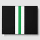 Este diseño deportivo y audaz presenta rayas de carreras de centro blanco unificadas con una franja verde brillante colorida contra bandas externas negras anchas.