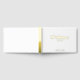 Disfrute de los recuerdos de su día especial con este libro de huéspedes de recepción personalizada, que incluye un elegante diseño de guiones y detalles de lujo de Relieve metalizado dorado. Perfecto para las parejas que aman una estética minimalista, este libro de huéspedes muestra sus nombres y fechas establecidas en un diseño atemporal y sofisticado. Ideal para bodas modernos, combina a la perfección temas clásicos y contemporáneos, ofreciendo una hermosa pieza central para la mesa de recepción. Este libro de visitas es un gran placer para sus huéspedes, ya que permite a sus huéspedes compartir mensajes sentidos y mejores deseos, lo que lo convierte en un recuerdo muy apreciado en los próximos años. Adaptado para bodas elegantes y sobrios, es la adición perfecta a la celebración de cualquier pareja.