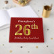 Este libro de huéspedes presenta el número ordinal 26 con un aspecto de imitación de oro. También cuenta con un nombre personalizado y un fondo de color rojo. Se podría usar en un fiesta para alguien que celebre su 26º cumpleaños. [~Z0000055]