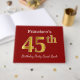 El diseño de este libro de huéspedes incluye el número ordinal "45" con un aspecto de oro falso. También cuenta con un nombre personalizado y un fondo de color rojo. Se podría usar en un fiesta para alguien que celebre su 45º cumpleaños. [~Z0000055]