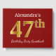 El diseño de este libro de huéspedes incluye el número ordinal "47" con un aspecto de imitación de oro. También cuenta con un nombre personalizado y un fondo de color rojo. Se podría usar en un fiesta para alguien que celebre su 47 cumpleaños. [~Z0000055]