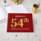 El diseño de este libro de huéspedes incluye el número ordinal "54th" con un aspecto de imitación de oro. También cuenta con un nombre personalizado y un fondo de color rojo. Se podría usar en un fiesta para alguien que celebre su cincuenta y cuarto cumpleaños. [~Z0000055]