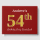 Libro De Visitas Red, Faux Gold 54th Birthday Party + Custom Name