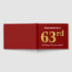 El diseño de este libro de huéspedes incluye el número ordinal "63" con un aspecto de imitación de oro. También cuenta con un nombre personalizado y un fondo de color rojo. Se podría usar en un fiesta para alguien que celebre su 63° cumpleaños. [~Z0000055]
