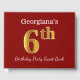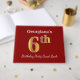 El diseño de este libro de huéspedes incluye el número ordinal "6º" con un aspecto falso dorado. También incluye un nombre personalizado y un fondo de color rojo. Se podría usar en un fiesta para alguien que celebre su sexto cumpleaños. [~Z0000055]