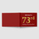 El diseño de este libro de huéspedes incluye el número ordinal "73" con un aspecto de imitación de oro. También incluye un nombre personalizado y un fondo de color rojo. Se podría usar en un fiesta para alguien que celebre su cumpleaños setenta y tres. [~Z0000055]