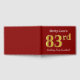 El diseño de este libro de huéspedes incluye el número ordinal "83" con un aspecto de imitación de oro. También cuenta con un nombre personalizado y un fondo de color rojo. Se podría usar en un fiesta para alguien que celebre sus ochenta y tres años. [~Z0000055]