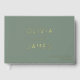 This elegant wedding guest book features a sophisticated design with a muted green cover and gold typography, exuding an air of timeless elegance. The minimalist style is complemented by the soft color palette and delicate script font, creating a refined and romantic atmosphere perfect for capturing heartfelt messages from guests on your special day. Ideal for couples who appreciate understated luxury, this guest book adds a touch of class to any wedding decor while inviting loved ones to share their well-wishes in a beautiful keepsake.