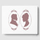 Rosas rosas rosas y elegantes detalles al estilo de Bridgerton Regency enmarcan dos clásicos, una mujer y los otros cameos machos, todo ello con un fondo blanco limpio.