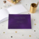 Un libro de invitados para una fiesta de cumpleaños 50 (o de cualquier edad) femenina y glamurosa. Un fondo morado profundo, de color desigual, texto de Relieve metalizado plateado real. Personalice y agregue un nombre, edad o texto. Espina: agrega tu texto.
