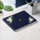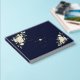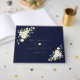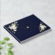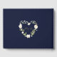 ¡Relieve metalizado real! ¡Tocando con brillo y clase! Diseño único con una acuarela delicada de color blanco, ramos de flores crema, divisor floral sobre un fondo azul marino. En la parte posterior de las flores blancas, marco cardíaco sobre fondo azul marino. Utilice la herramienta Personalize para agregar su información. Para ver los elementos coincidentes, por favor, visite mi Colección de Flores Blancas.